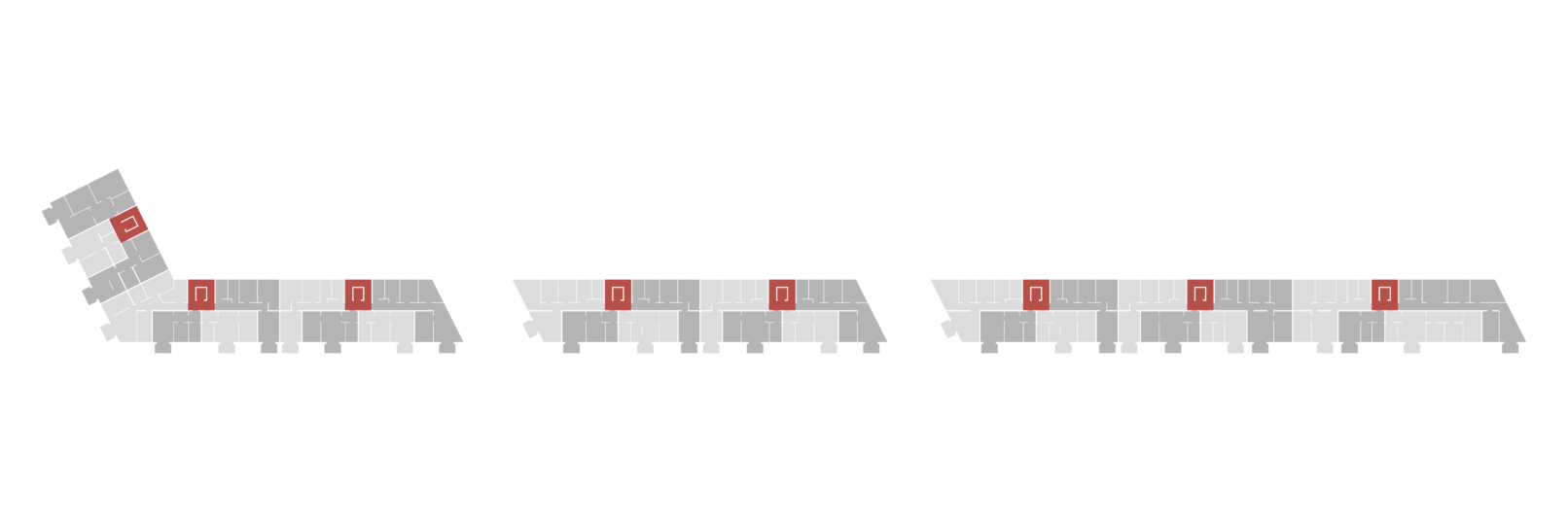 Die Grundrisse sind konsequent auf Wirtschaftlichkeit und Alltagstauglichkeit ausgerichtet. Wiederkehrende Typen ermöglichen eine effiziente Planung, ohne dass sich das Gebäude in der Nutzung monoton anfühlt. Unterschiedliche Wohnungsgrößen sorgen für ein vielfältiges Angebot.
