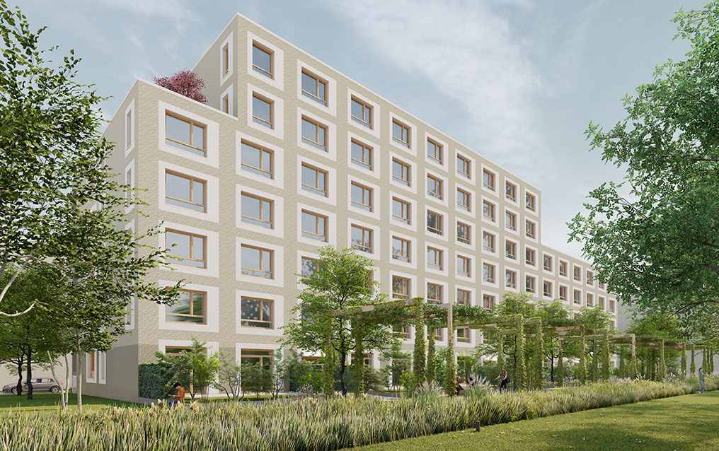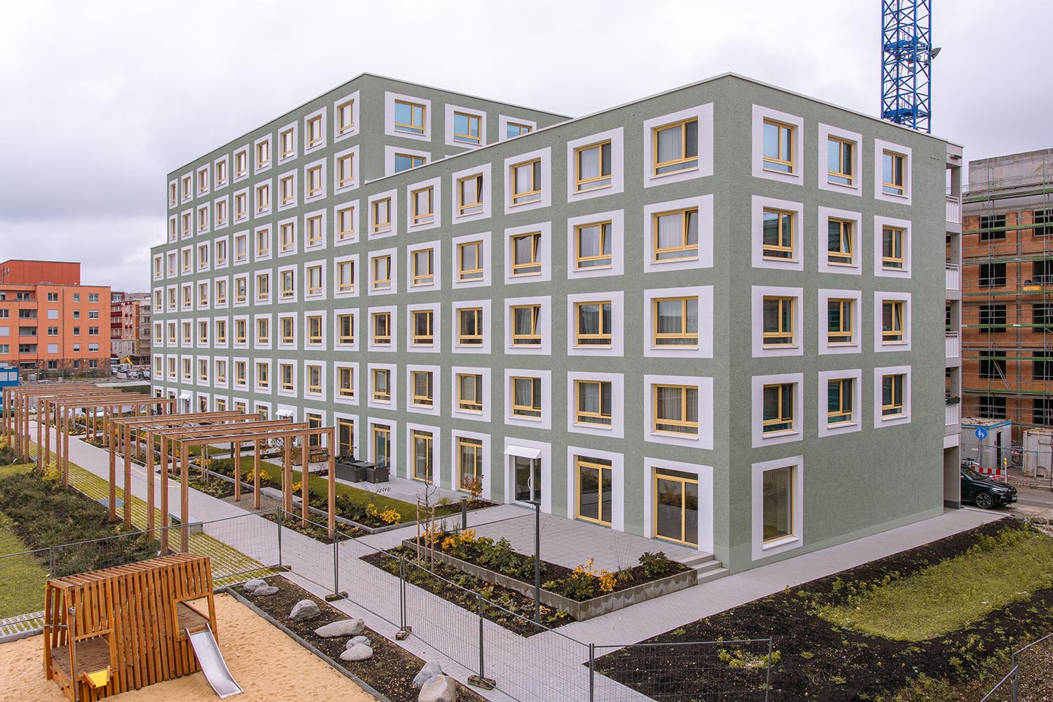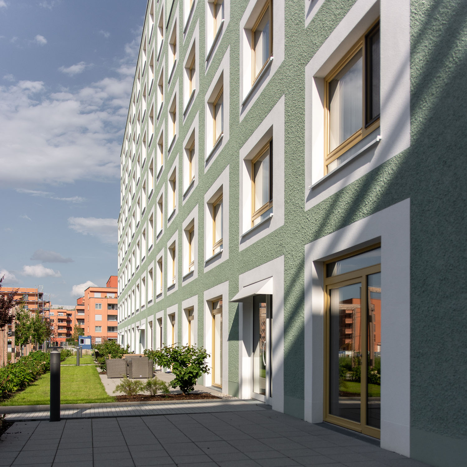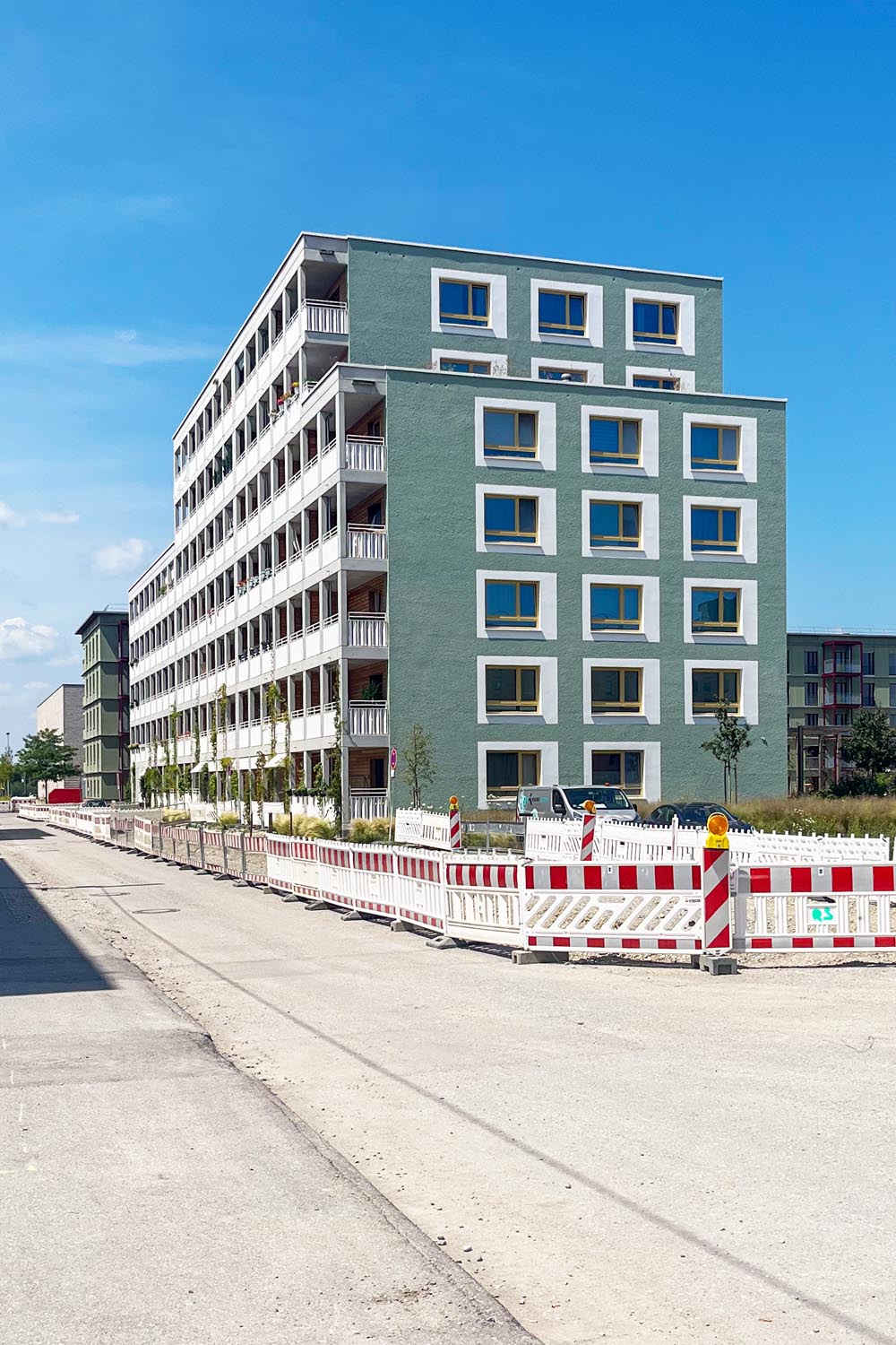 Mitten in der Pandemie an einer Konzeptausschreibung teilzunehmen und eine durchschnittliche Kaltmiete von 10,48 EUR zu garantieren, war vielleicht nicht die beste Idee. Aber genau so begann unser Projekt im WA 15. Ein KMB-Grundstück, 58 Wohnungen, jede Menge Konzeptbausteine und ein sehr ehrgeiziger Zeitplan: Es wurde also nicht langweilig. Das WA15 entstand mit klarer Struktur, robusten Materialien und einem ruhigen Erscheinungsbild. Trotz Baustoffknappheit und Videokonferenzen stand das Haus keine drei Jahre nach Planungsbeginn fertig da. Heute fügt sich das Haus selbstverständlich in Freiham ein – und wir freuen uns, dass am Ende alles so geradlinig geworden ist, wie es von Anfang an gedacht war.