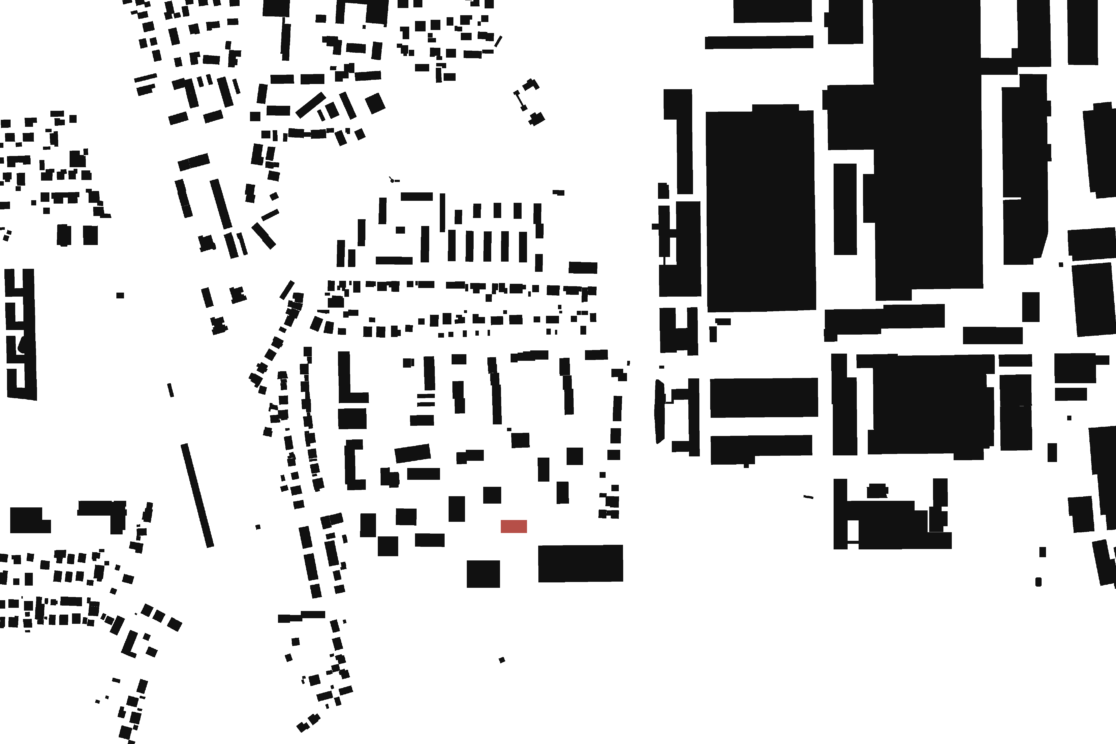 Der viergeschossige Riegel fasst den Quartiersplatz räumlich und gibt ihm eine klare Adresse. Im Erdgeschoss belebt eine Gewerbeeinheit den öffentlichen Raum und verankert das Gebäude im städtischen Kontext.