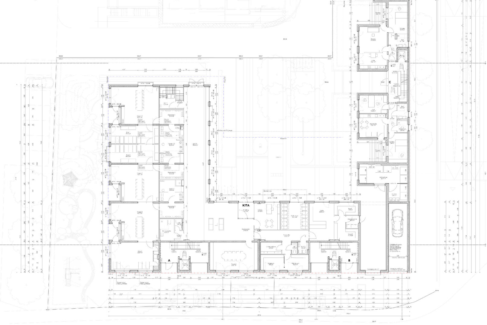 Die Integration einer Kindertagesstätte in ein Wohngebäude verlangt besondere Sorgfalt. Wohnen braucht Rückzug, eine Kita Offenheit und Bewegung.