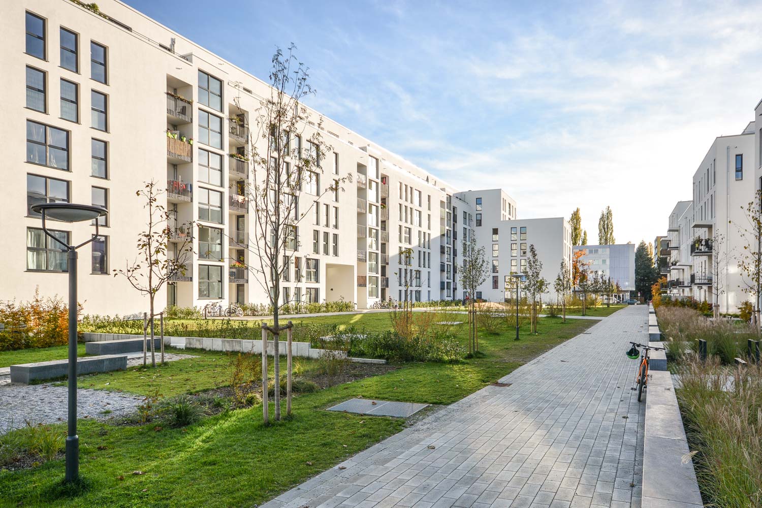 Die Wohnanlage entstand auf dem Gelände der ehemaligen AGFA in München-Giesing. Mit der Umnutzung des Areals wurde ein vormals industriell geprägter Ort in ein Wohnquartier überführt. Dem Neubau ging der Abbruch eines Bestandsgebäudes voraus – ein sichtbarer Einschnitt, der den Wandel des Ortes markiert.