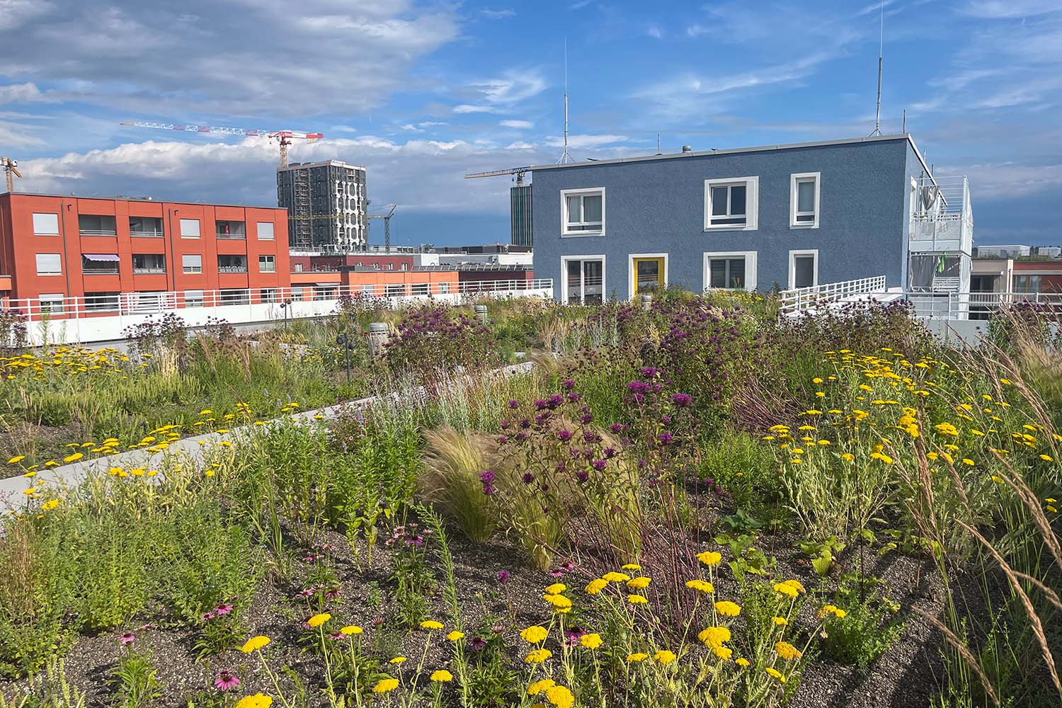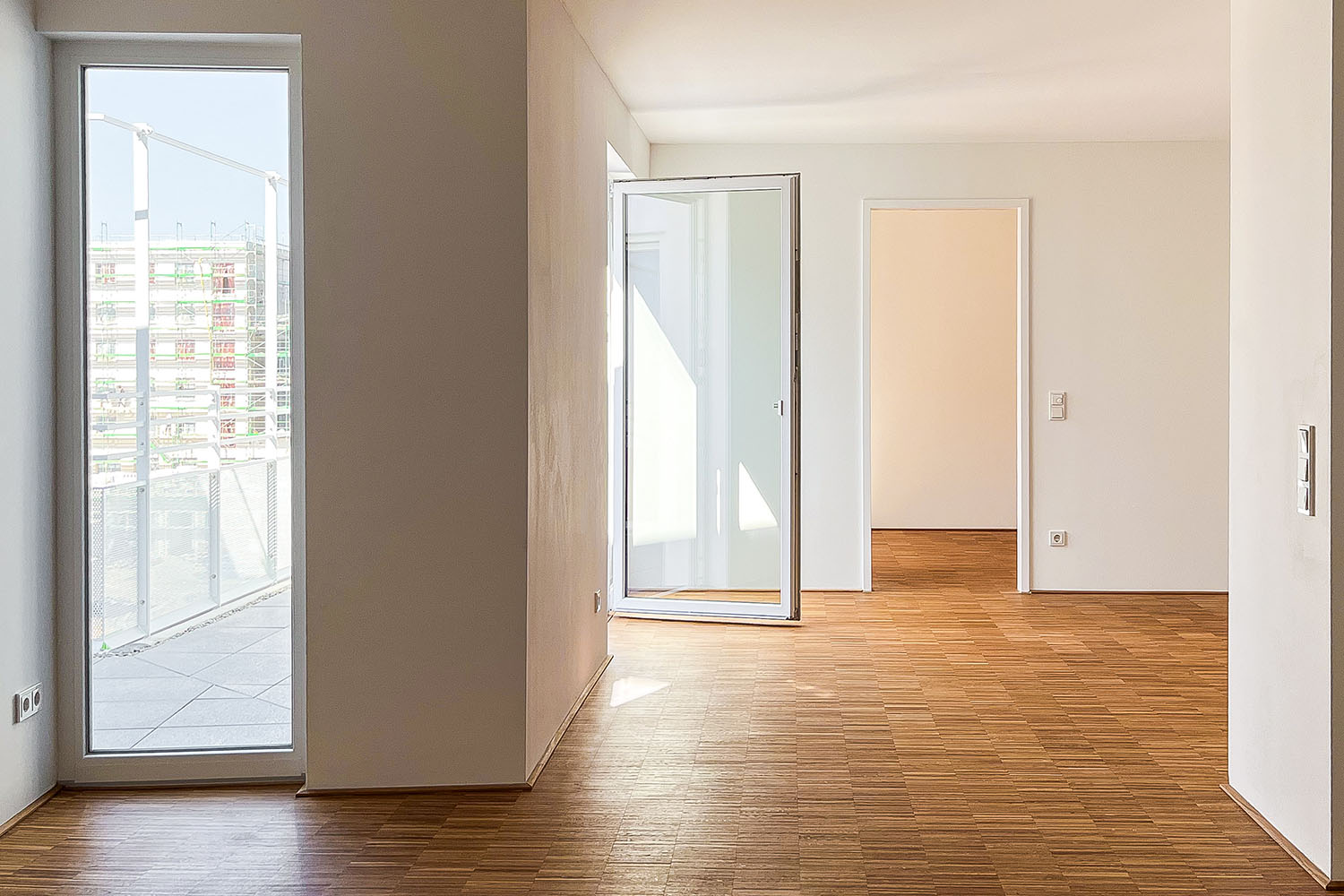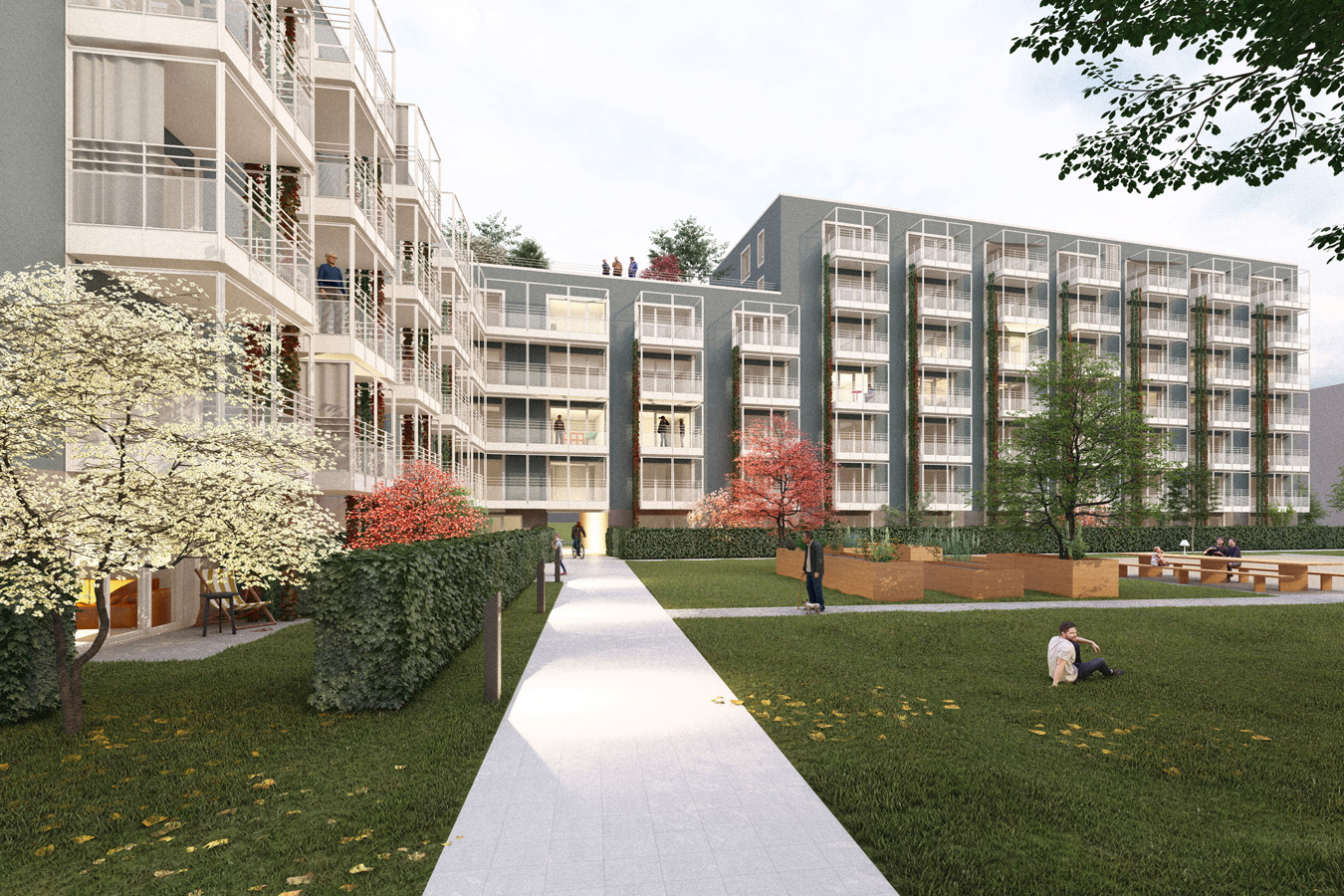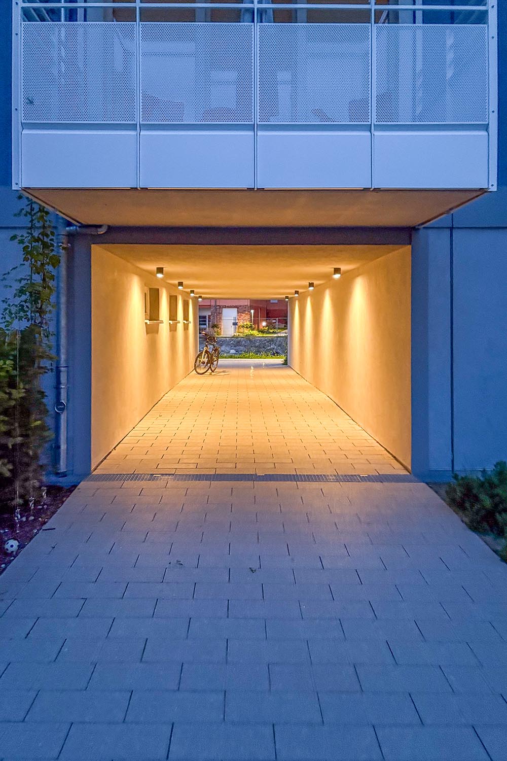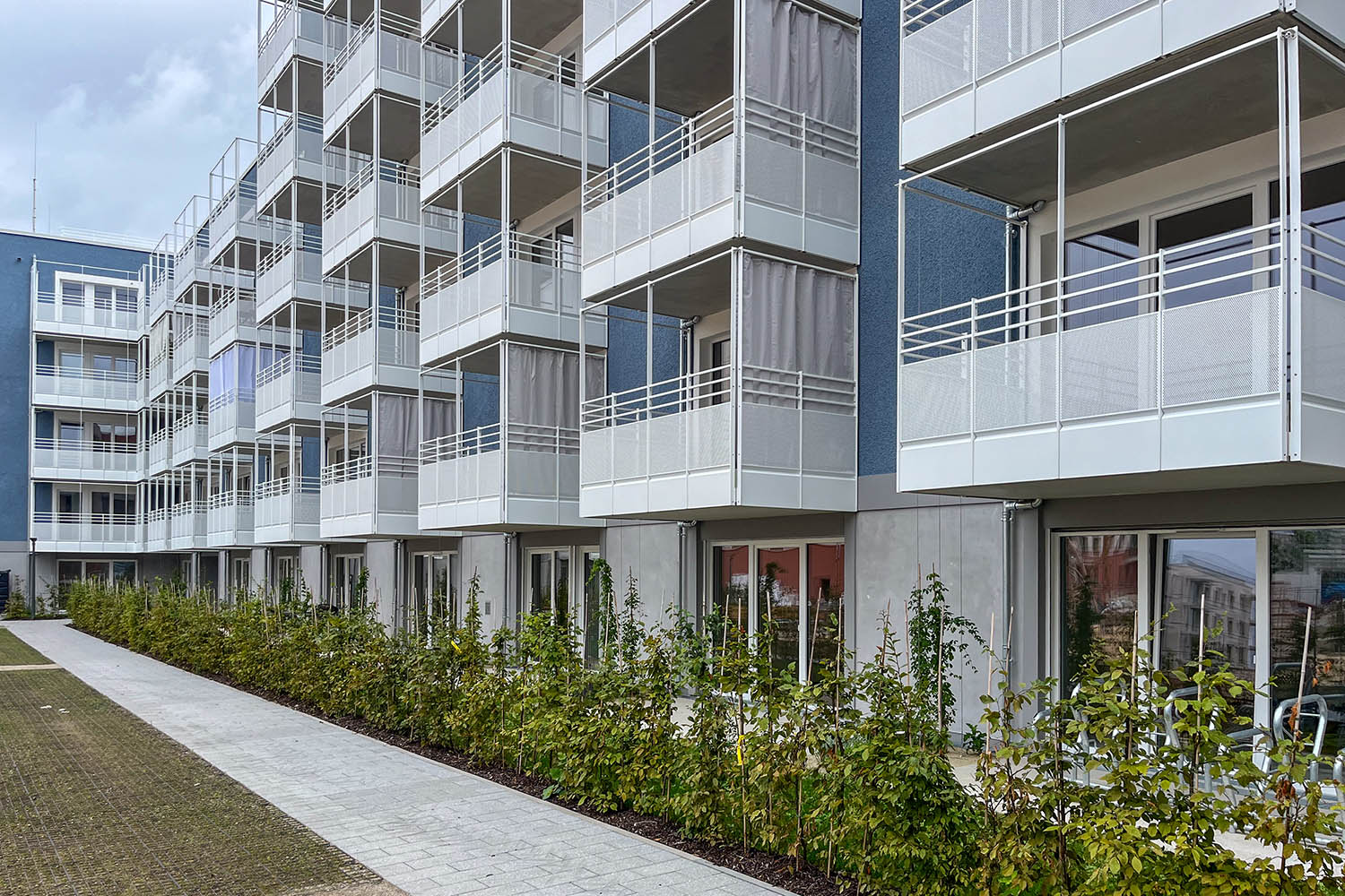 Nach unserem ersten Projekt im WA 15 kam gleich das zweite im WA 17. Wieder preisgedämpfter Mietwohnungsbau mit begrenzten Mitteln und hohem Kostendruck. Unsere Antwort war ein klarer und effizienter Entwurf, konventionell gebaut ohne serielle Vorfertigung und trotzdem sehr schnell. Die zu errichtende Geschossfläche und die engen Vorgaben des B-Plans ließen keinen Spielraum für Variationen des Baukörpers. So musste das Haus in voller tiefe und ohne Unterbrechung um die Ecke geführt werden. Man wünscht sich eigentlich mehr Freiheiten, aber in Sachen Baukosten und Energieeffizienz sind solche Einschränkungen ein großer Gewinn.